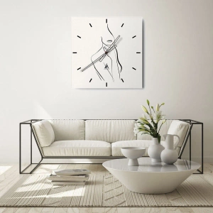 Wanduhr - Glasuhr - Eine minimalistische Skizze der Silhouette einer Frau vor hellem Hintergrund. - 30x30cm - Eine Welle der Melancholie - Moderne Wanddekoration für Wohnzimmer und Schlafzimmer ARTTOR