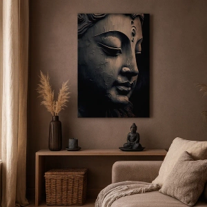 • Buddha, Indien, Meditation, Architektur, Blumen, Für das Büro, für das Arbeitszimmer, für das Esszimmer, für das Badezimmer, für den Flur, für das Wohnzimmer, für das Schlafzimmer, Orange, Grau, Vertikal