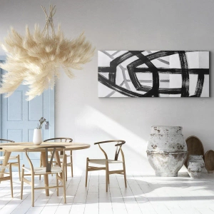 Bild auf Leinwand - Leinwandbild - Schwarz-weiße abstrakte Linien, die sich auf hellem Hintergrund kreuzen - 70x50cm - Bautiefe - Moderne Wanddekoration für Wohnzimmer und Schlafzimmer ARTTOR