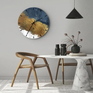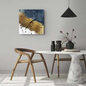 Wanduhr - Glasuhr - Eine abstrakte Komposition in Gold-, Blau- und Weißtönen. - 30x30cm - Farben des Sommers - Moderne Wanddekoration für Wohnzimmer und Schlafzimmer ARTTOR