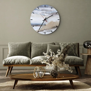 Wanduhr - Glasuhr - Abstrakte Winterlandschaft in Weiß- und Blautönen - 30x30cm - Winterkomposition - Moderne Wanddekoration für Wohnzimmer und Schlafzimmer ARTTOR
