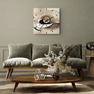 Wanduhr - Glasuhr - Abstrakte Komposition in Beige- und Schwarztönen - 30x30cm - Komposition: die Essenz des Wortes - Moderne Wanddekoration für Wohnzimmer und Schlafzimmer ARTTOR