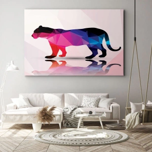 - Die geometrische Silhouette eines Panthers in intensiven Rosa- und Blautönen symbolisiert Stärke und Dynamik und passt perfekt in moderne Innenräume.