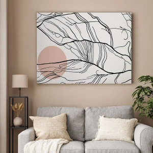 - Ein minimalistischer Leinwanddruck mit abstrakten Linien und einem geometrischen, pastellrosa Akzent. Perfekt für moderne und elegante Innenräume.