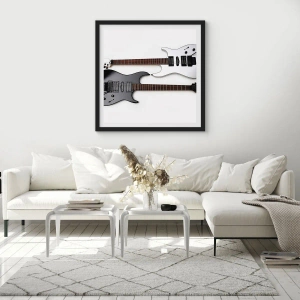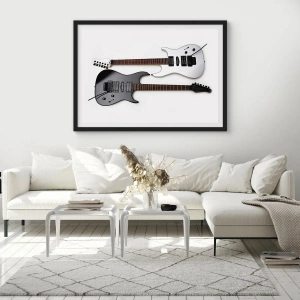 Harmonie der Formen ist ein modernes Poster, das zwei E-Gitarren in einem eleganten und minimalistischen Stil darstellt. Die schwarzen und weißen Gitarren bilden eine kontrastreiche Kombination, die Aufmerksamkeit erregt und dem Interieur einen unverwechselbaren Charakter verleiht.