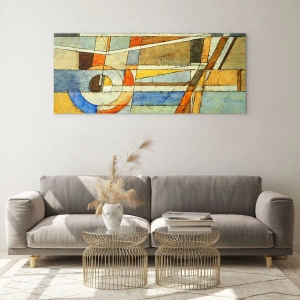 Glasbild - Bild auf glas - Eine abstrakte Komposition mit geometrischen Mustern und warmen Farben. - 70x50cm - Kubismus auf der Baustelle - Moderne Wanddekoration für Wohnzimmer und Schlafzimmer ARTTOR