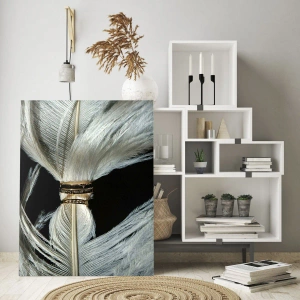 - Goldene Eheringe auf weichen, weißen Federn bilden ein zartes und elegantes Arrangement mit tiefer symbolischer Bedeutung. Ein romantisches Motiv, perfekt für Innenräume voller Harmonie und Emotionen.