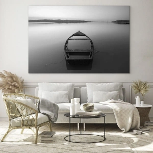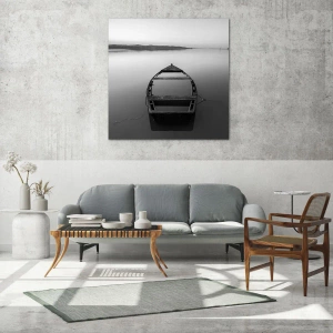 Die Szenerie ist einfach, aber nicht ohne Tiefe – der verschwommene Horizont und die sanften Tonübergänge erzeugen eine Aura des Geheimnisvollen. Der Schatten des Bootes, der sich auf der Wasseroberfläche spiegelt, betont das Thema der Einsamkeit und seine verfallene Struktur wird zu einer Metapher für das, was verlassen und vergessen wurde. Es ist ein Rahmen, der Emotionen hervorruft und zum Nachdenken anregt, während er gleichzeitig als raffinierte Wanddekoration dient.