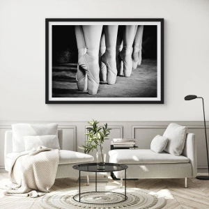 Poster in einem schwarzem Rahmen - Ein schwarz-weißes Poster mit Ballett-Spitzenschuhen. - 50x70cm - Gemeinsam, leicht - Moderne Wanddekoration für Wohnzimmer und Schlafzimmer ARTTOR