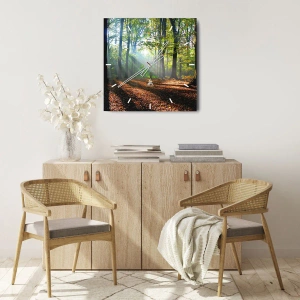 Wanduhr - Glasuhr - Eine Waldlichtung, die von den Sonnenstrahlen erleuchtet wird - 30x30cm - Licht und Schatten - Moderne Wanddekoration für Wohnzimmer und Schlafzimmer ARTTOR