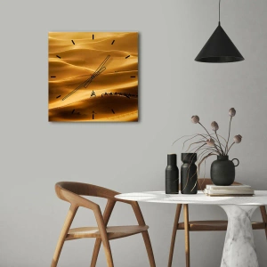 Wanduhr - Glasuhr - Eine Karawane in der Wüste im goldenen Licht - 30x30cm - Wohnwagen in den Wüstenwellen - Moderne Wanddekoration für Wohnzimmer, Küche und Schlafzimmer ARTTOR