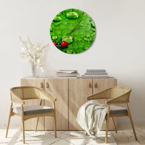 Wanduhr – Meeting in Green – Marienkäfer auf einem Blatt mit Wassertropfen