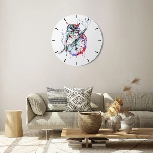 Wanduhr - Glasuhr - Bunte Aquarell-Eule im künstlerischen Stil - 30x30cm - Von Natur aus klug - Moderne Wanddekoration für Wohnzimmer und Schlafzimmer ARTTOR