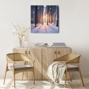 • Landschaft, Wald, Schnee, Landschaften, Wälder, Natur, Für das Büro, für das Arbeitszimmer, für das Esszimmer, für den Flur, für das Wohnzimmer, für das Schlafzimmer, weiß schwarz, Quadrat