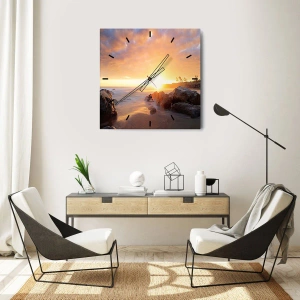 Wanduhr - Glasuhr - Sonnenuntergang über der felsigen Küste - 30x30cm - Leuchtende Brise des Abends - Moderne Wanddekoration für Wohnzimmer und Schlafzimmer ARTTOR