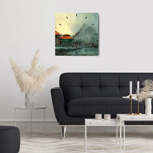 Wanduhr - Glasuhr - Ein sonniger Tag im Hafen - 30x30 cm