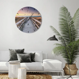 Wanduhr - Glasuhr - Holzsteg zum Strand bei Sonnenuntergang - 30x30cm - Der Raum für Auffliegen - Moderne Wanddekoration für Wohnzimmer und Schlafzimmer ARTTOR