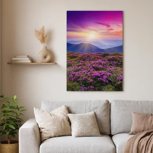 Bild auf Leinwand - Leinwandbild - Bergwiese mit Blumen bei Sonnenuntergang - 50x70cm - Kräuter dufteten nach frischen Trauben von den Feldern - Moderne Wanddekoration für Wohnzimmer und Schlafzimmer ARTTOR
