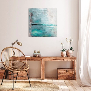 Bild auf Leinwand - Leinwandbild - Abstraktion in Türkis- und Grautönen - 50x70cm - Horizontal in Blau - Moderne Wanddekoration für Wohnzimmer und Schlafzimmer ARTTOR