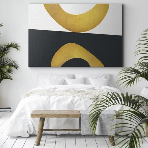 Bild auf Leinwand - Leinwandbild - Geometrische Formen in Gold auf weißem und dunklem Hintergrund - 70x50cm - Erstens: Gold - Moderne Wanddekoration für Wohnzimmer und Schlafzimmer ARTTOR