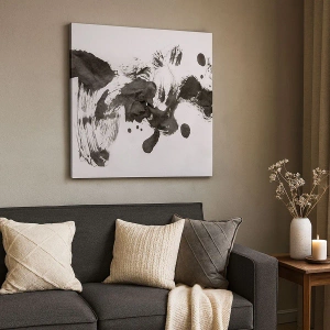 Bild auf Leinwand - Leinwandbild - Abstrakte Komposition aus schwarzen Flecken auf weißem Hintergrund - 50x70cm - Obwohl das Wahnsinn ist, steckt darin eine Methode? - Moderne Wanddekoration für Wohnzimmer und Schlafzimmer ARTTOR