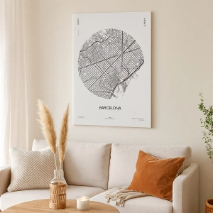 Bild auf Leinwand - Leinwandbild - Eine Karte von Barcelona im minimalistischen Schwarz-Weiß-Stil - 70x50cm - Anatomie von Barcelona - Moderne Wanddekoration für Wohnzimmer und Schlafzimmer ARTTOR