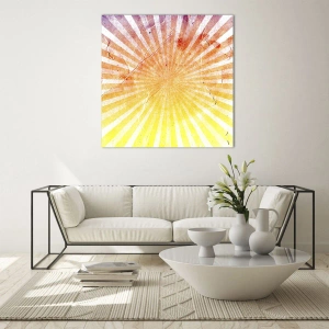 Glasbild - Bild auf glas - Strahlen der aufgehenden oder untergehenden Sonne im Retro-Stil - 50x70cm - Sonnenaufgänge und Sonnenuntergänge - Moderne Wanddekoration für Wohnzimmer und Schlafzimmer ARTTOR