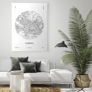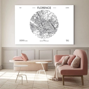 Glasbild - Bild auf glas - Florenz in Form einer stilisierten Karte mit einem Straßennetz - 50x70cm - Anatomie von Florenz - Moderne Wanddekoration für Wohnzimmer und Schlafzimmer ARTTOR