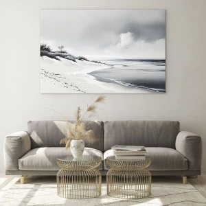 Wandgemälde – Always Together – Schwarz-weißer Strand mit Horizont und ruhiger See
