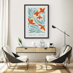 Poster in einem schwarzem Rahmen - Dekorative Blumen in Orange- und Blautönen - 50x70cm - Zur Erde, zur Sonne - Moderne Wanddekoration für Wohnzimmer und Schlafzimmer ARTTOR