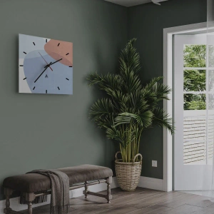 Wanduhr - Glasuhr - Eine abstrakte Form in Blau und Terrakotta auf hellem Hintergrund. - 30x30cm - Pastellbeziehungen - Moderne Wanddekoration für Wohnzimmer, Küche und Schlafzimmer ARTTOR