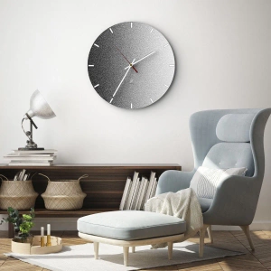 Die Uhr hat ein rundes Format von 30 x 30 cm und besteht aus Glas, was den Kontrast zwischen Schwarz und Weiß noch verstärkt. Die glatte, glänzende Oberfläche verleiht dem gesamten Stück ein edles Aussehen. Dies ist eine moderne Dekoration, die perfekt zu zeitgenössischen Inneneinrichtungen passt – minimalistisch, industriell, Loft oder skandinavisch.
