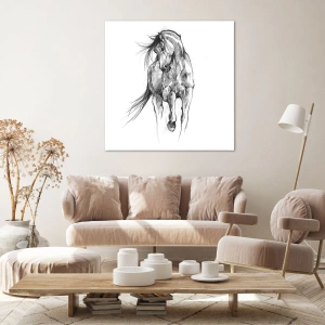 Bild auf Leinwand - Leinwandbild - Schwarz-Weiß-Skizze eines galoppierenden Pferdes - 100x70cm - Im anmutigen Trab - Moderne Wanddekoration für Wohnzimmer und Schlafzimmer ARTTOR