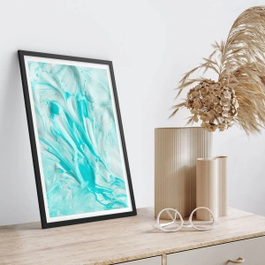 - Das Poster zeigt ein türkisfarbenes abstraktes Muster in zarten Pastelltönen. Perfekt für moderne oder minimalistische Innenräume, bringt es Harmonie und Eleganz.