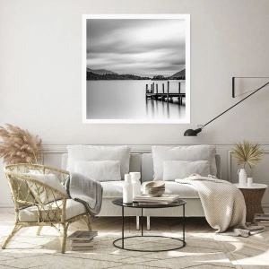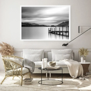 Poster - Schwarz-weiße Landschaft mit einem Pier über einem See - 100x70cm - Milde und Kraft - Moderne Wanddekoration für Wohnzimmer und Schlafzimmer ARTTOR