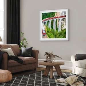 Poster in einem weißen Rahmen - Eisenbahn für Bergblick - 91x61 cm