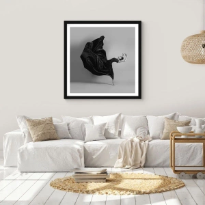 Poster in einem schwarzem Rahmen - Eine elegante Tänzerin in einem schwarzen Kleid in Bewegung - 70x50cm - Beflügelt durch die Musik - Moderne Wanddekoration für Wohnzimmer und Schlafzimmer ARTTOR