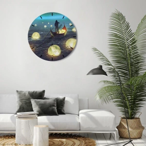 Die Wanduhr „Dinge, von denen Philosophen nie geträumt hätten“ ist ein einzigartiges Dekorationselement, das Ihrem Interieur eine Aura der Mystik und Inspiration verleiht. Das Zifferblatt zeigt eine Gestalt in einem Boot, umgeben von leuchtenden Kugeln auf dem Wasser, wodurch eine einzigartige, märchenhafte Landschaft entsteht.
