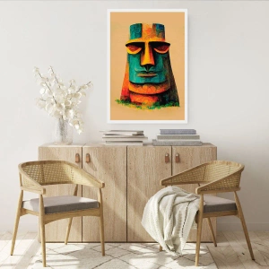 Poster - Eine farbenfrohe Interpretation einer Moai-Statue vor beigem Hintergrund - 50x70cm - Statuenhaft und sympathisch - Moderne Wanddekoration für Wohnzimmer und Schlafzimmer ARTTOR