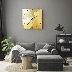 Wanduhr - Glasuhr - Goldene geometrische Formen in einer modernen Komposition - 30x30cm - Geometriewetter - Moderne Wanddekoration für Wohnzimmer, Küche und Schlafzimmer ARTTOR