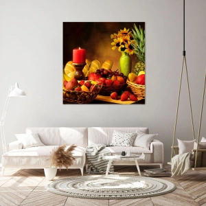 Bild auf Leinwand - Leinwandbild - Stillleben mit Brot und Obst - 45x80 cm