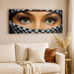 Bild auf Leinwand - Leinwandbild - Ein Porträt einer verschleierten grünäugigen Schönheit - 45x80 cm