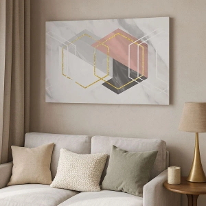 Die Leinwand wird über den Rahmen gespannt. Die Seiten und Kanten werden gedruckt, um das Bild fortzusetzen. Das Bild ist fertig zum Aufhängen an der Wand. Jedes Produkt hat einen am Rahmen befestigten Anhänger und ein Montageset (Schraube + Stift).