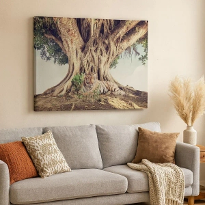Bild auf Leinwand - Leinwandbild - Ein Tiger ruht unter einem ausladenden Baum - 100x70cm - Blick aus dem Buch Genesis - Moderne Wanddekoration für Wohnzimmer und Schlafzimmer ARTTOR