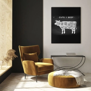 Glasbild - Bild auf glas - Rindfleischschnittdiagramm auf einer schwarzen Tafel - 50x70cm - Metzger Grundierung - Moderne Wanddekoration für Wohnzimmer und Schlafzimmer ARTTOR