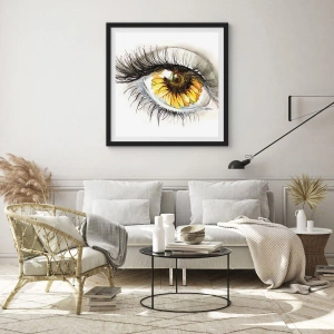 Poster in einem schwarzem Rahmen - Künstlerisches Auge mit sonnenblumenförmiger Iris - 70x50cm - Ein Look so heiß wie der Sommer - Moderne Wanddekoration für Wohnzimmer und Schlafzimmer ARTTOR