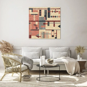 Glasbild - Bild auf glas - Abstraktes geometrisches Muster in Beige- und Rottönen - 70x50cm - Eine Kombination aus Vertikalen und Ebenen - Moderne Wanddekoration für Wohnzimmer und Schlafzimmer ARTTOR