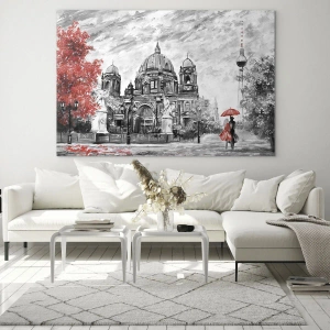 Glasbild - Bild auf glas - Berliner Dom mit rotem Akzent in monochromen Tönen - 50x70cm - Berliner Treffen - Moderne Wanddekoration für Wohnzimmer und Schlafzimmer ARTTOR