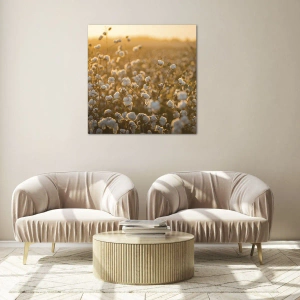 Glasbild - Bild auf glas - Baumwollfeld bei Sonnenuntergang - 70x50cm - Fluffiges Feld - Moderne Wanddekoration für Wohnzimmer und Schlafzimmer ARTTOR