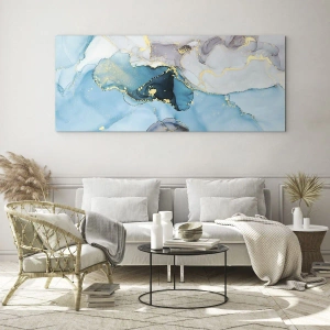 Glasbild - Bild auf glas - Eine Studie über das Zusammentreffen von Grau und Türkis - 100x40 cm